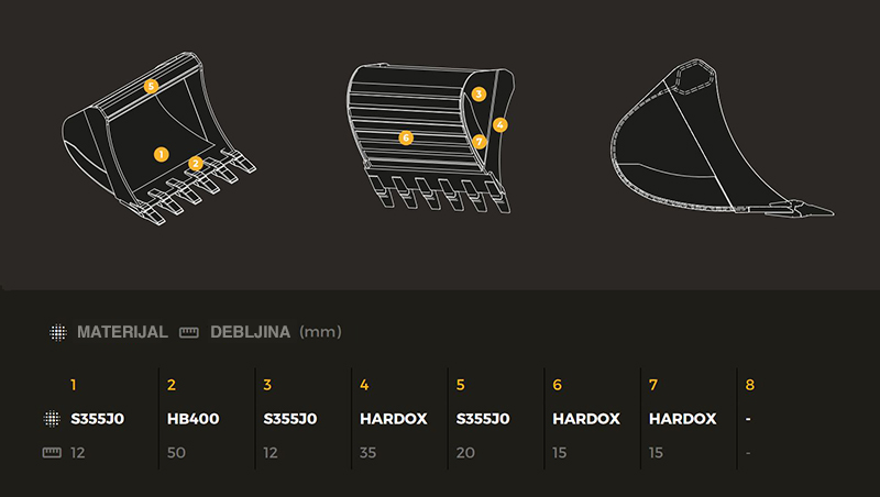Korpe od vrhunskih HARDOX, WELDOX materijala opremljene najkvalitetnijim habajućim elementima ESCO.