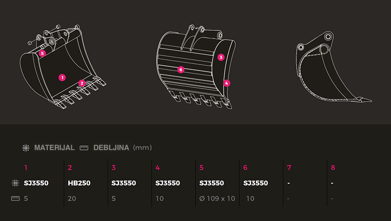 Korpe od vrhunskih HARDOX, WELDOX materijala opremljene najkvalitetnijim habajućim elementima ESCO.